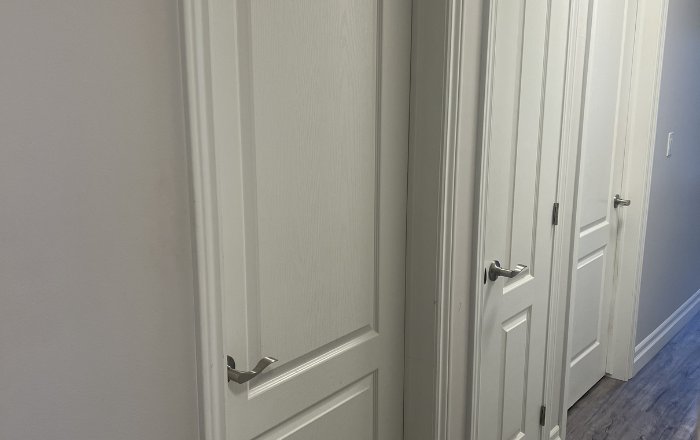 This interior door installation project in Windsor was completed by Allawi Renovation Services Inc as part of a home interior upgrade. The homeowner wanted to replace several outdated and worn interior doors with modern, durable doors that would improve both functionality and the overall appearance of the home.